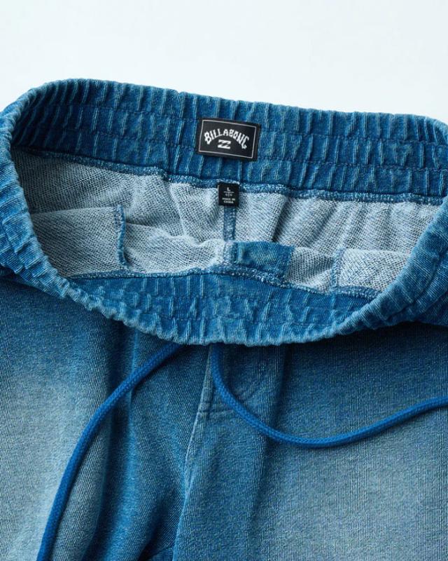 風合いの良い裏毛のスウェット生地を使用した定番ウォークショーツ。左脚の切り替え部分に大きくBILLABONGロゴをプリント。右ヒップポケットにタグを施しました。ウエストはゴム&ドローコード仕様。レングス20インチ。ベーシックなカラーに加え、加工感の強いインディゴカラーINDをラインナップしました。