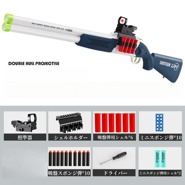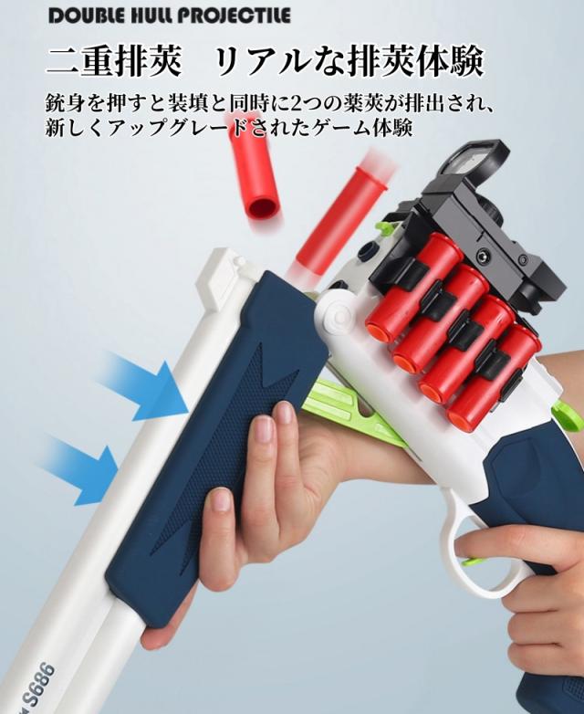 おもちゃ銃 ダブルバレルガン 上下二連式 スポンジ弾 手動排莢 排莢式 トイガン 銃 おもちゃ 2種類スポンジ弾付き 乱射 プレゼント