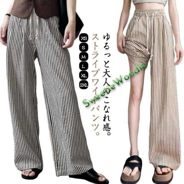 ワイド ストライプ 低身長 ボトムス 高身長 冷感 パンツ レディース 涼しい 夏 ワイドパンツ イージーパンツ ストライプパンツ 接触冷感 夏用 ワイドパンツ きれいめ ゆったり 大きいサイズ 体型カバー ストレートパンツ リラックスパンツ