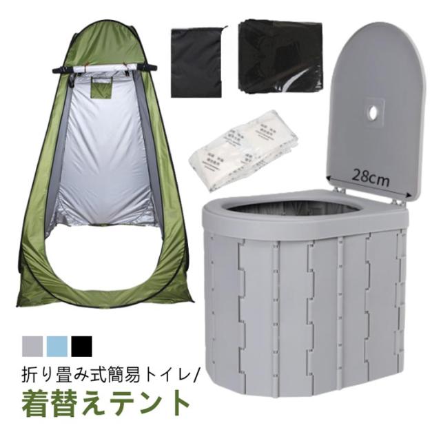 ポータブル 携帯 簡易トイレ付き 非常用トイレ 透けない プライバシーテント ポータブルトイレ キャンプ 防災 セット 着替え ワンタッチ 折りたたみ コンパクト アウトドア 着替えテント 5点セット 防災グッズ 更衣室 簡易テント 処理袋 凝固剤 テント