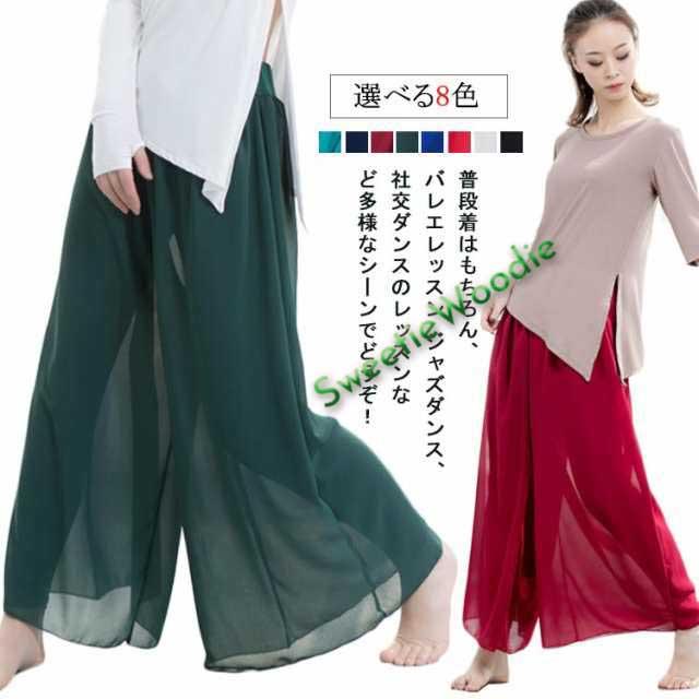 レッスンウェア 無地 フレアパンツ ガウチョ 美脚 ワイドパンツ レギンス付き パンツ シースルー シフォン 社交ダンス ヨガパンツ スカンツ レッスンパンツ 美脚 ラテンダンス ヨガウェア スカーチョ 部屋着 春夏 ダンスウェア 踊りパンツ