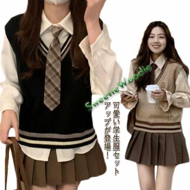 3点セット ニットベスト 学生服 おしゃれ 高校生 女の子 制服 上下セット 可愛い 白シャツ JK制服 女子高校生 プリーツスカート ライン入り スクール制服 女子高校生 長袖 中学生 学生服 韓国 コスプレ衣装 コスチューム 仮装 スーツ