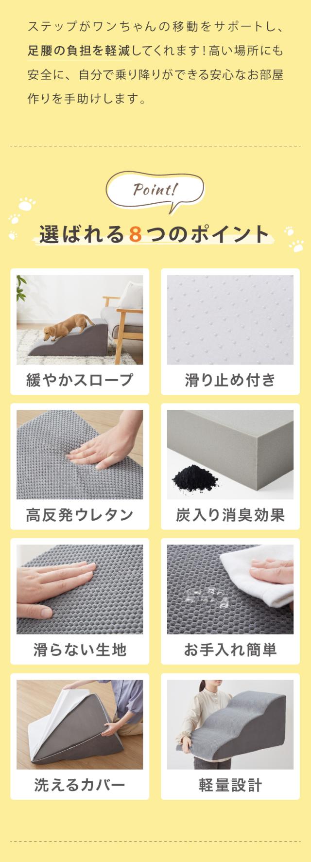 ドッグステップ、3段、犬用、ペットステップ、踏み台、ステップ、室内犬、ペット用品、撥水、クッション、犬階段、階段、負担軽減、老犬、中型犬、小型犬、高齢犬、介護用品、ソファ、シニア犬、補助、犬用品、ウレタン