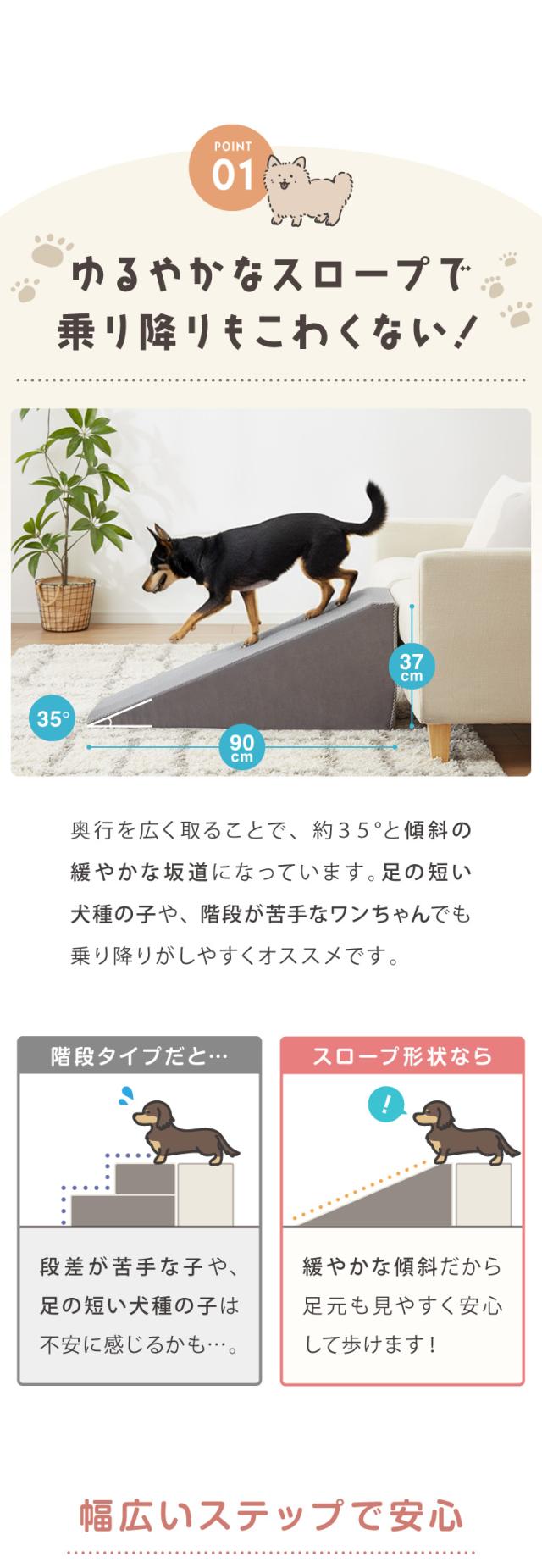 ドッグステップ スロープ 幅40cm ドッグスロープ ウレタン 撥水 クッション 踏み台 ステップ ペットステップ 室内犬 シニア犬 老犬 介護用品 ケガ防止 小型犬 犬用品 補助 トイプードル 傾斜【送料無料】