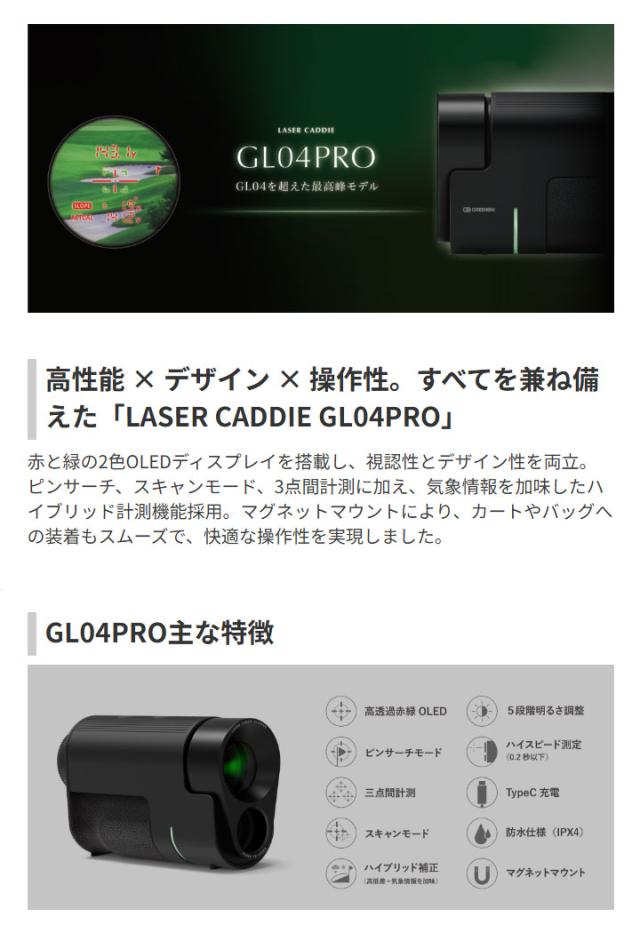 【正規販売店】グリーンオン レーザーキャディー GL04PRO レーザー距離計 ブラック 距離測定器 ハイブリッド計測 GreenOn LASER CADDIE GL04プロ BK