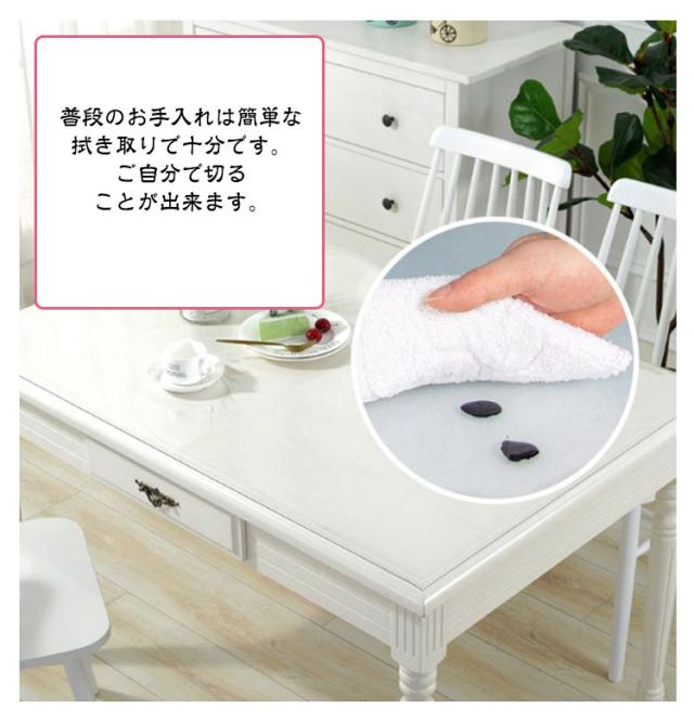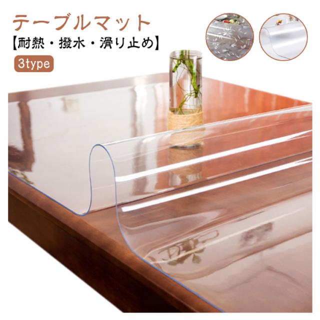 | 【テーブルマット】【3type】【耐熱・撥水・滑り止め】 水と油の汚れ防止、耐熱、滑り止め、テーブルの天板保護に最適なマットです! 環境に優しいPVCプラスチック、食品用安全材料。お手入れが簡単。 お子様がいる家庭は、食べこぼしや汁物こぼれも安心! テーブルクロス、テーブルマット、デスクマットとして、学生デスク、学習机、ティーテーブルなどにも使用できます。 普段のお手入れは簡単な拭き取りで十分です。ご自分で切ることが出来ます。 透明だからお好きな色のテーブルクロスを下に敷いて合わせてもお洒落。 | |