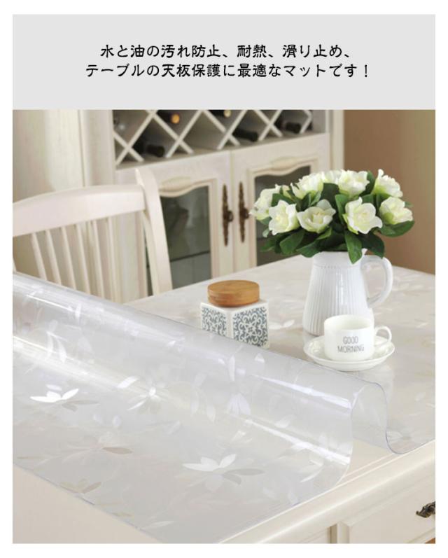 テーブルマット 透明 テーブルクロス ビニール おしゃれ 撥水 滑り止め PVC デスクマット 食卓カバー ダイニングテーブルマット 防水 撥油 耐熱 汚れ防止 傷防止 家庭用 オフィス用 業務用 厚さ1.0mm 長方形 テーブルカバー