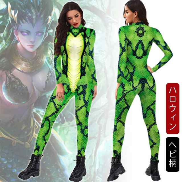 ハロウィン コスプレ 大人 全身タイツ 衣装 コスチューム ヘビ ヘビ柄 蛇 へび 服 変装 仮装 コスプレ 3D プリント 女性 レディース プレイスーツ