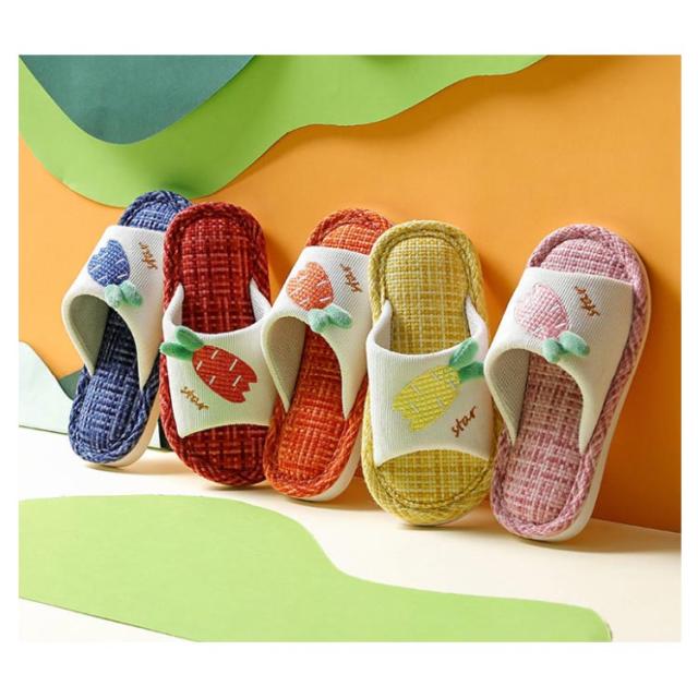 送料無料 スリッパ 夏 男の子 女の子 夏 ルームシューズ 果物 柄 子供 サンダル 刺繍 サマーサンダル 夏スリッパ 麻繊維 快適 室内履き 室内靴