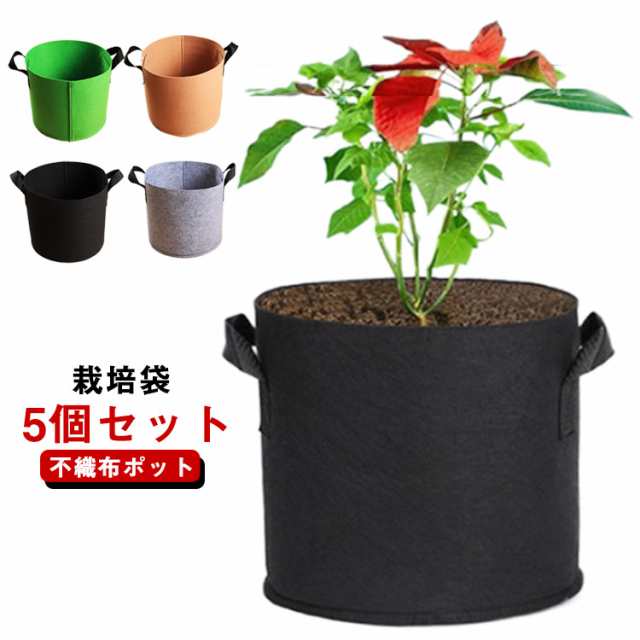 | 栽培袋 5個セット 高品質の厚手の不織布と裏地から作られ、通気性、浸透性が良い。 しっかり持ち上げて移動するための丈夫で強化されたハンドル。 | |