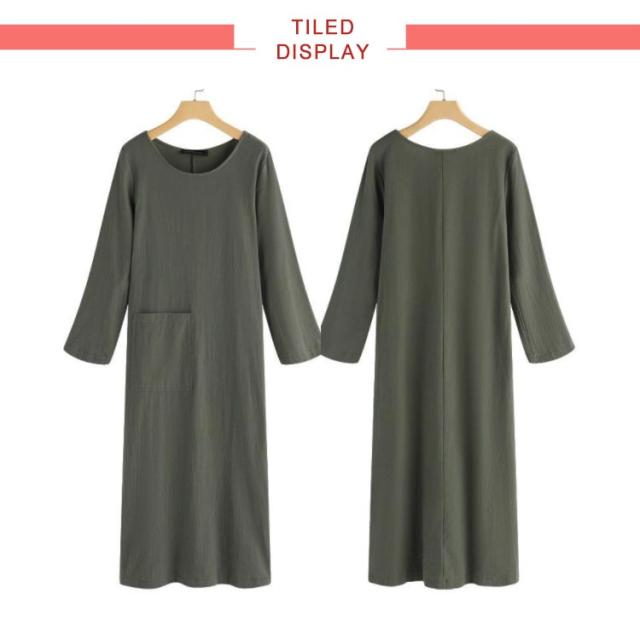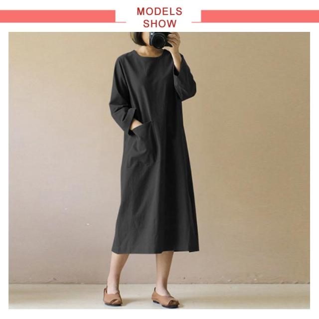 | 肌寒い時期に一枚あるととっても便利な長袖ロングワンピース 首元をスッキリ見せてオシャレな印象に。 シンプルで洗練されたデザインです。 サイドポケット付きで小物入れが便利♪ キレイなシルエットを作りながらゆったり体型カバーの優秀アイテム | |