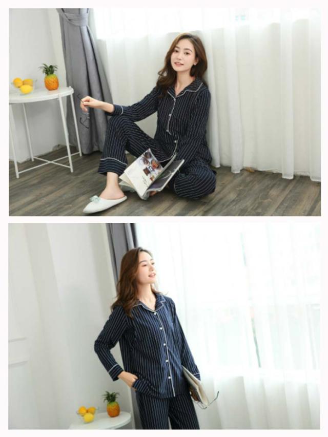 マタニティパジャマ パジャマ 寝巻 ルームウエア 長袖 前開き 長パンツ ズボン セットアップ 上下セット 授乳口付き ポケット付き ウエスト調節ゴム付き 春 秋 ストライプ柄 送料無料