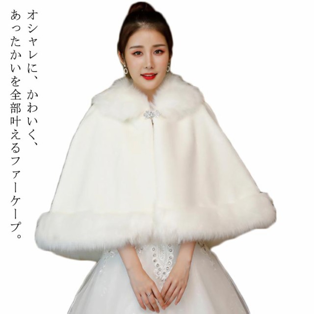 ファーショール ウエディング ボレロ フリーサイズ ファーケープ 厚手 襟付き 肩掛け フェイクファー 大判 パーティー ブライダル 結婚式 二次会 演奏会 発表会 着物 成人式 ホワイト