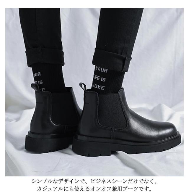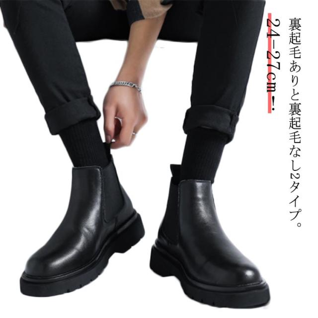 サイドゴアブーツ メンズ ビジネスシューズ ビジネスブーツ 厚底 ブーツ サイドゴア ショートブーツ メンズブーツ 靴 くつ シューズ 紳士靴 裏起毛あり 裏起毛なし 2タイプ 防寒 暖かい 大人 ブラック 秋冬 カジュアル フォーマル シンプル 通勤