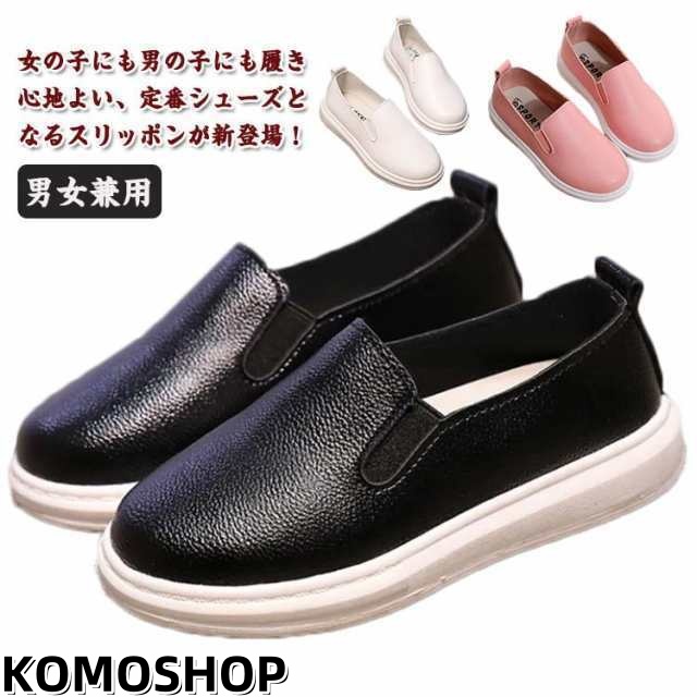 キッズシューズ スリッポン スニーカー PUレザー シューズ 靴 子供靴 カジュアル 無地スリッポン キッズ ベビー 靴 くつ クツ スニーカー 男の子 女の子 男女兼用 紐なし 入園 通園 入学 通学 お揃い 子供靴 ローファー パンプス