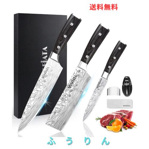 MOSFIATA包丁セット-【牛刀、包丁、ナイフ】3点セットキッチンナ、高炭素ステンレスハンドル付き、203mm牛刀、178mm包丁、126mm万能ナ、