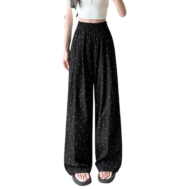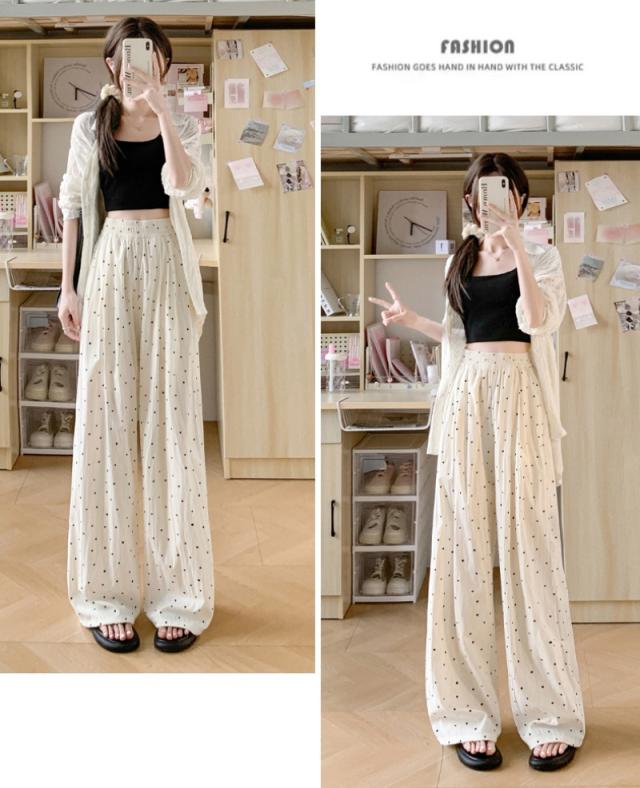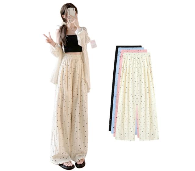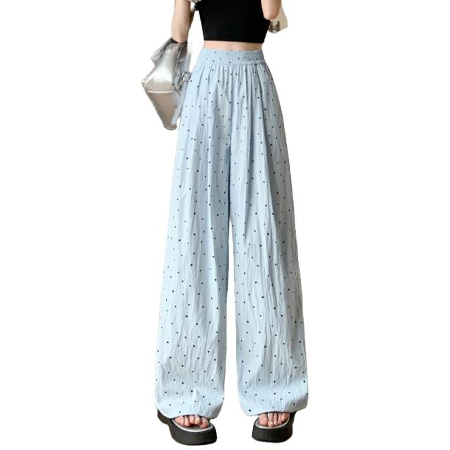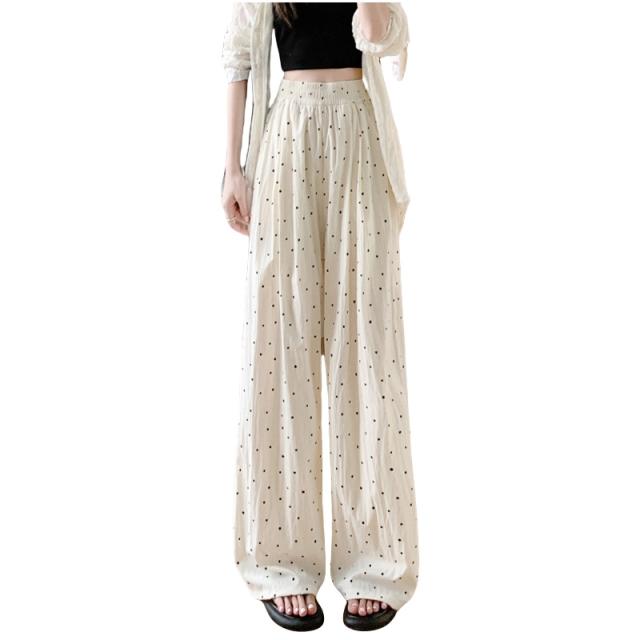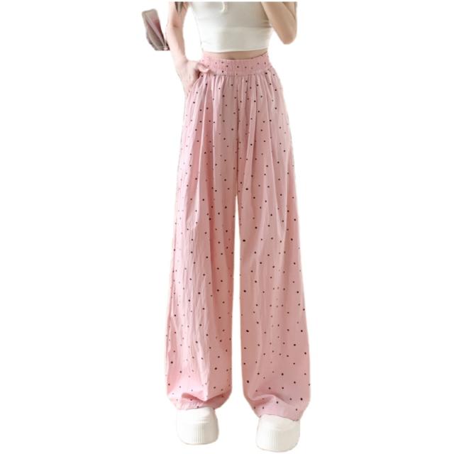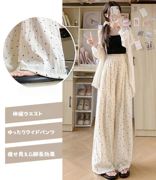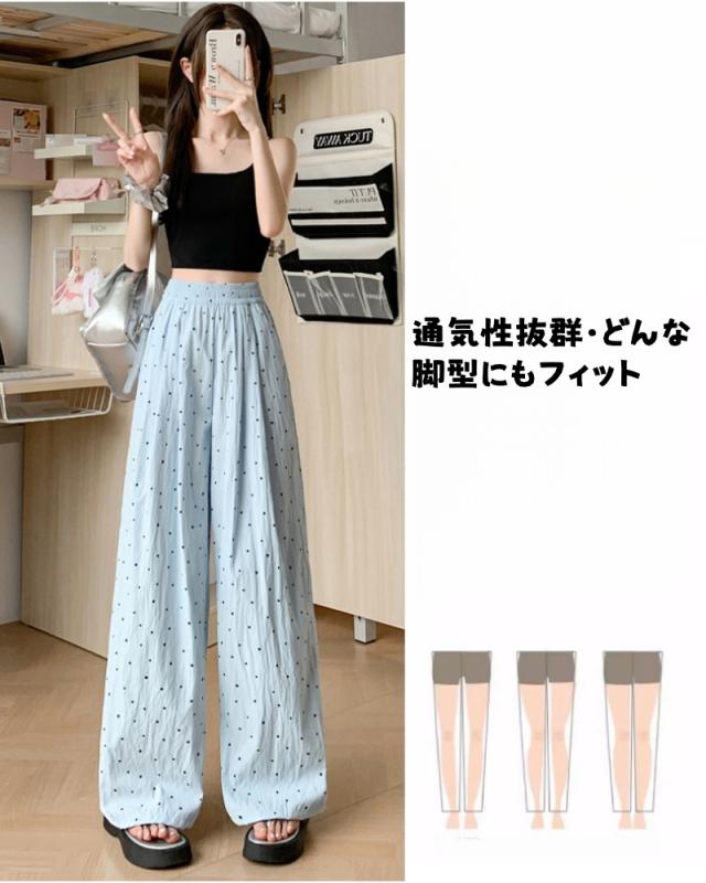 レディース ドット柄 ワイドパンツ ハイウエスト ゆったり ガウチョパンツ 楽ちん 涼しい 薄手 春夏 体型カバー ストリート系 カジュアル ボトムス ロングパンツ ルーズパンツ 冷感 美脚 イージーパンツ