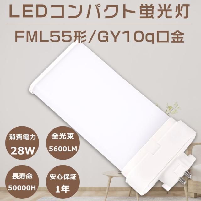 LED蛍光灯 FML55形 FML55EX-N FML55EXN 昼白色5000K ツイン蛍光灯 FML55型 代替用LED蛍光灯 LEDランプ LEDツイン蛍光灯 LED化 FML55W形対応 LED照明器具 LEDコンパクト蛍光灯 口金GY10q 消費電力28W 全光束5600LM LED電球 節電 家庭照明 店舗照明 1年保証 配線工事必須