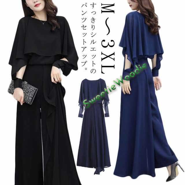 パンツスーツ セットアップ レディース シフォン パンツドレス 2点セット 送料無料 ワイドパンツ パーティードレス ロング パンツ ブラウス シャツ フォーマル 春 夏 秋 大きいサイズ スーツ オフィス OL 通勤 きれいめ カジュアル オールインワン ウエストゴム入り