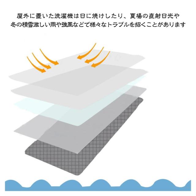 | 屋外に置いた洗濯機は日に焼けしたり、夏場の直射日光や、冬の積雪激しい雨や強風などで様々なトラブルを招くことがあります。 洗濯機本体は劣化易くなって、使用寿命は短くなります。 本製品を使って、屋外の不利点を止めて、防水、防湿、日焼け止め、紫外線遮断で、愛用されている洗濯機を保護します。 被せるだけなので簡単に室外機を守ってくれて安心です。 設置し易く、取り外しも簡単です。 | |
