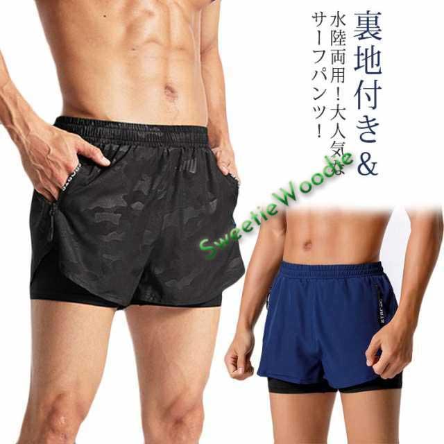 サーフパンツ メンズ 海パン 海水パンツ 水陸両用 水着 インナー付き 裏地付き ハーフパンツ ショートパンツ ボードショーツ 水着 サーフショーツ 吸汗速乾 UVカット 大きいサイズ 体型カバー ラッシュガード 海水浴 プール 川遊び 水遊び 海外旅行 送料無料 迷彩 無地