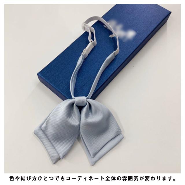 | ワンタッチで取り付けるタイプのリボンです。 リボンのゴムは長さ調整可能なので、きっちりつけることもちょっとゆるくつけることも、その日の気分に合わせて可能です。 たくさんのバリエーションの中から、毎日のリボンの着回しも楽しんでください♪ 色や結び方ひとつでもコーディネート全体の雰囲気が変わります。 | |