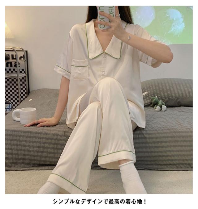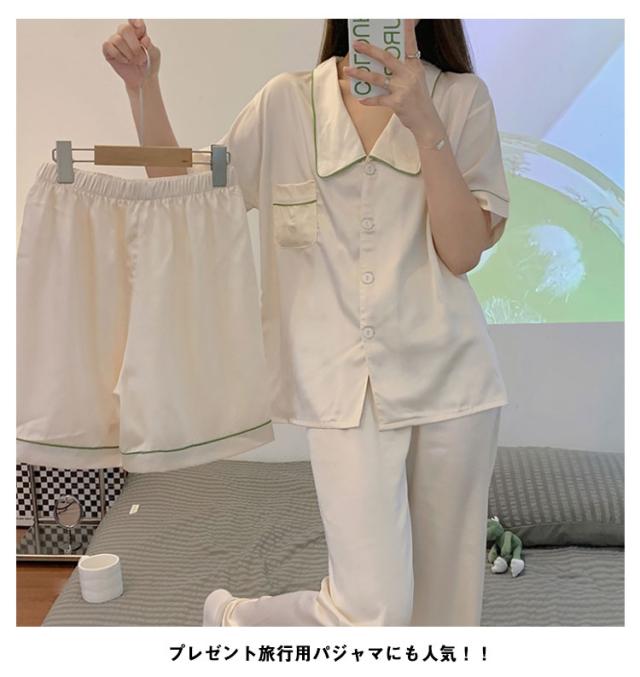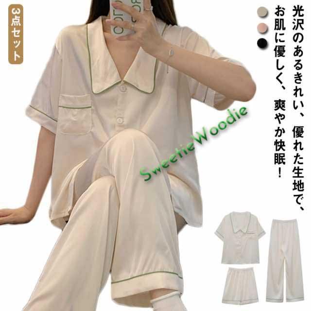 3点セット パジャマ トラベルパジャマ レディース シルクタッチ アイスシルク ひんやり 涼しい 夏 夏用 パジャマ ルームウェア 前開き 長袖 長ズボン 短ズボン 3点 上下セット 新作 春 夏 秋 部屋着 婦人