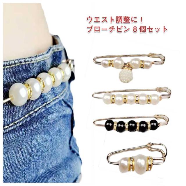 8個セット ブローチピン ウエスト調整 キルトピン アクセサリー ゴールド シルバー ストールピン カブトピン 安全ピン パール ブローチ ピン レディース プレゼント カーディガンクリップ ウエスト引き締めピン 女性用