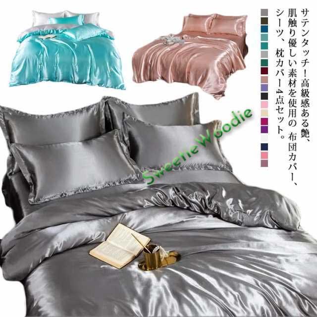布団カバー セット 接触冷感 おしゃれ 4点セット ツルツル 冷感 夏用 光沢 シングル セミダブル 布団カバーセット 掛布団 おしゃれ まくらカバー ベッドシーツ 通気性抜群 丸洗い 洋式 ダブル
