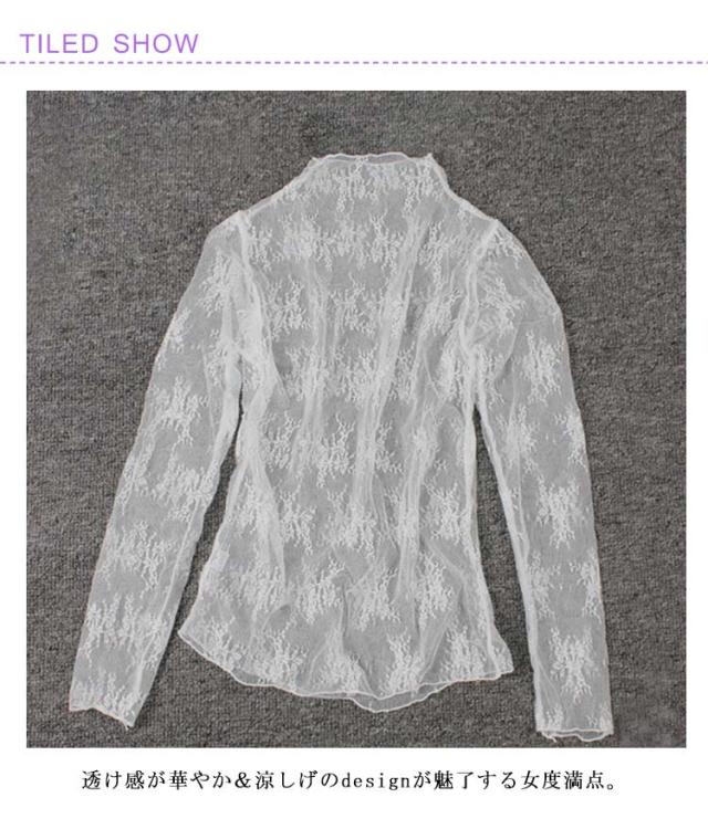 シースルー トップス ハイネック ブラウス 透け 透け感 肌見せ インナー レース シースルー シースルーブラウス 長袖 セクシー 大人 シアー 黒 ブラック 白 ホワイト 大きいサイズ 春 夏 秋