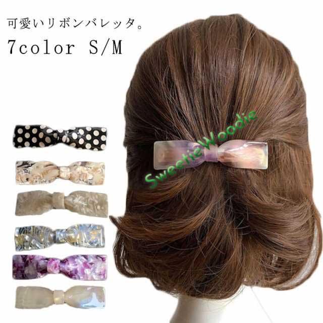 シンプルカラーリボンバレッタ べっ甲風 ドット アクリル ヘアアクセ ヘアアクセサリー 大きめ 小さめ レディース 大人っぽい かわいい おしゃれ プレゼント 送料無料