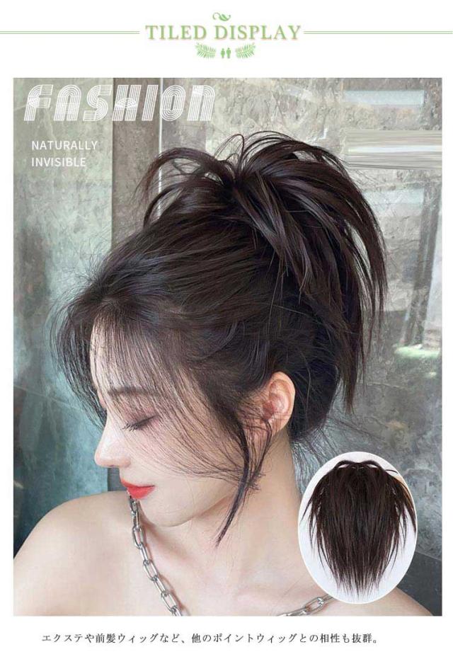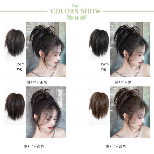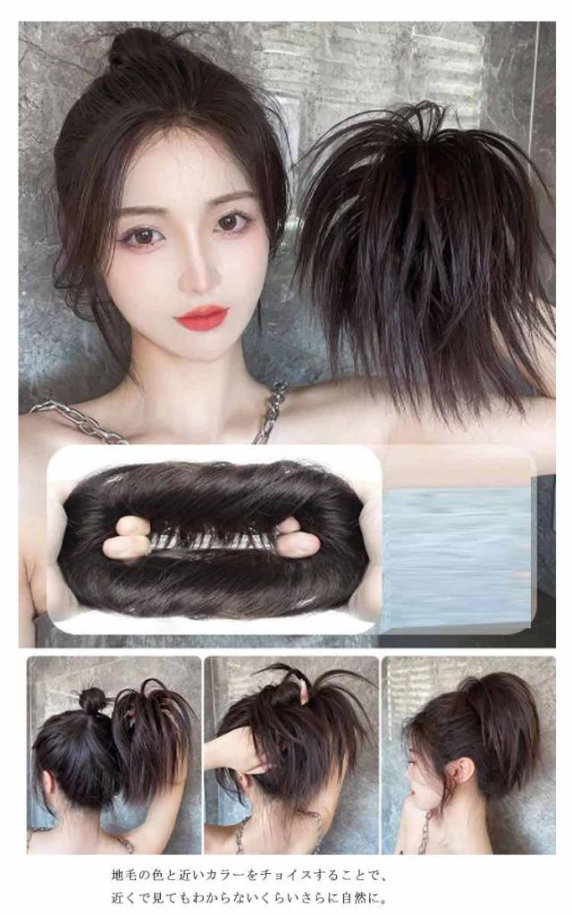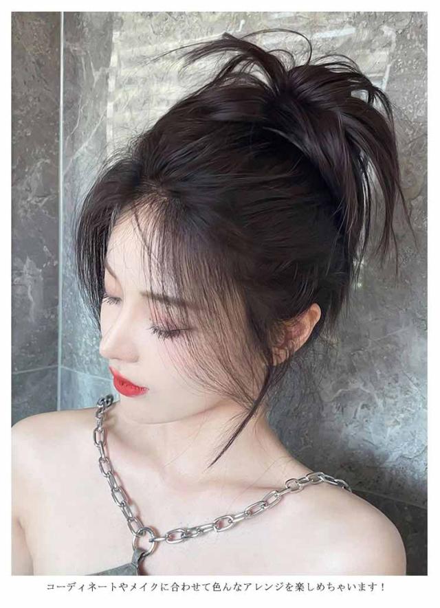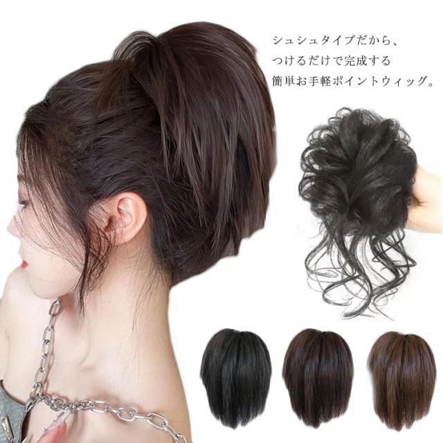 | シュシュタイプだから、つけるだけで完成する簡単お手軽ポイントウィッグ。 エクステや前髪ウィッグなど、他のポイントウィッグとの相性も抜群。 コーディネートやメイクに合わせて色んなアレンジを楽しめちゃいます! 地毛の色と近いカラーをチョイスすることで、近くで見てもわからないくらいさらに自然に。 | |