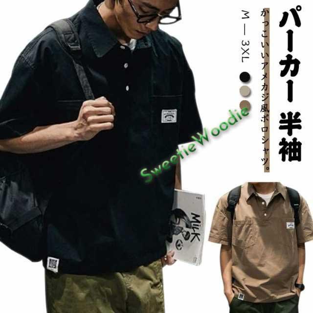ビッグシルエット パーカー 半袖 メンズ 半袖パーカー 襟付き Tシャツ ポロシャツ プルオーバーパーカー 薄手 夏服 春夏 トップス シンプル カジュアル アメカジ ストリート系 かっこいい M L XL 2XL 3XL