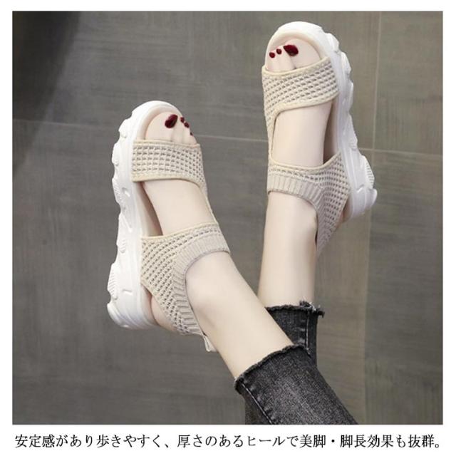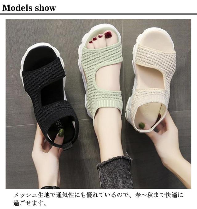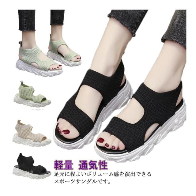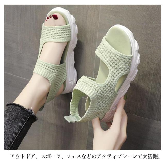 2023年新作 厚底サンダル レディース 厚底 スポーツサンダル メッシュサンダル ビーチサンダル 軽量 通気性 美脚 ウォーキングシューズ 婦人靴 シンプル カジュアル ブラック ベージュ グリーン 送料無料