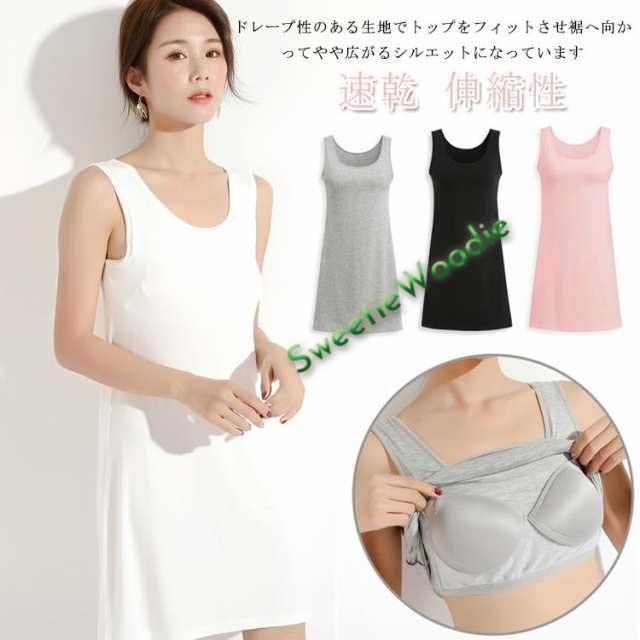 インナーキャミソールワンピース カップ付き スリップ 接触冷感 透け防止 インナー キャミソールカップ付き キャミソール ショート スリップ 白グレー ベージュ 黒 ペチワンピ ミディアム ミニ 透け防止 浴衣ペチワンピース 大きいサイズ