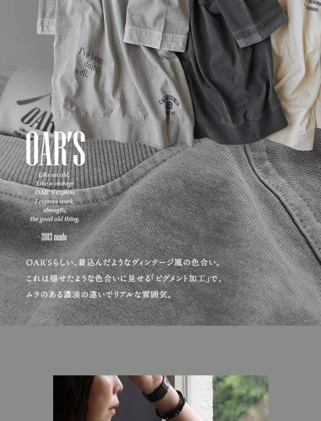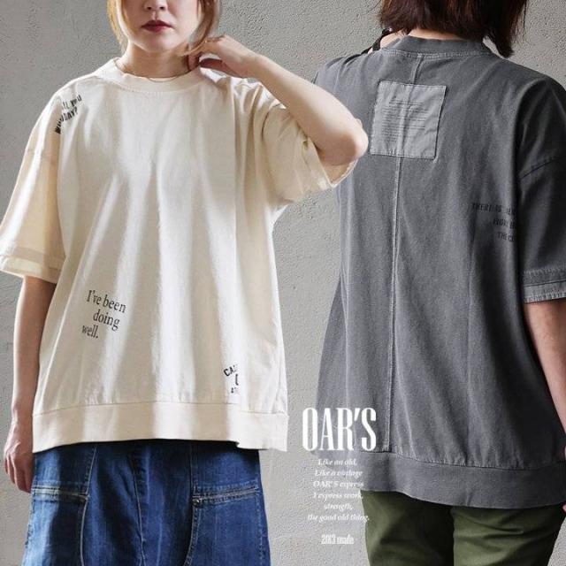 【メール便50】 ユーズド カラー tシャツ レディース 5分袖 半袖 大き目 ビッグシルエット ワイド 着やせ 夏 プリント フェイクレイヤード 綿100 コットン しっかり 丈夫 洗濯 強い リブ 重ね着 アメカジ カジュアル パティ OAR’S オールズ