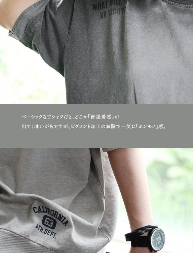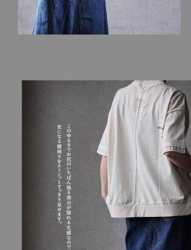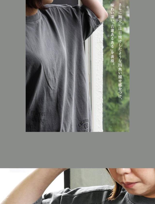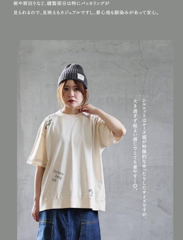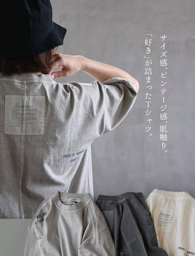 ユーズド カラー tシャツ レディース 5分袖 半袖 大き目 ビッグシルエット ワイド 着やせ 夏 プリント フェイクレイヤード 綿100 コットン しっかり 丈夫 洗濯 強い リブ 重ね着 アメカジ カジュアル パティ