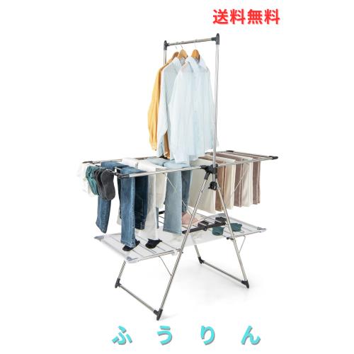 Giantex 物干しスタンド 折りたたみ式 ステンレス 組み立て不要 メッシュ付き 幅138cm ロッド付き 洗濯物干し 室内物干し タオルハンガー