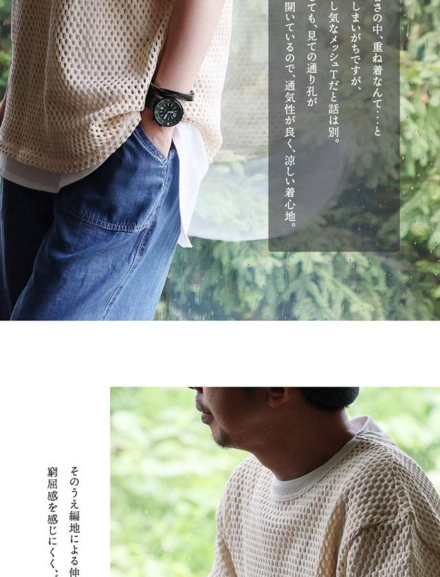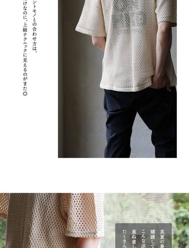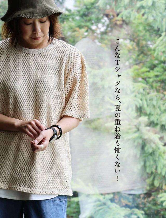 ・真夏の暑さの中、重ね着なんて…と躊躇してしまいがちですが、こんな涼し気なメッシュTだと話は別。
