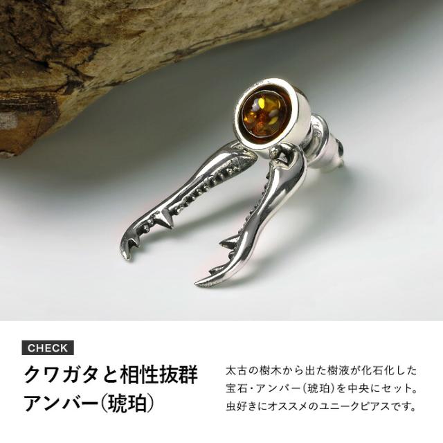 シルバー925 昆虫 クワガタ虫 ピアス メンズ レディース 琥珀 アンバー ストーンピアス 個性的 スタッグビートル ツノ おもしろ シルバーアクセサリー 片耳用 bae-1471