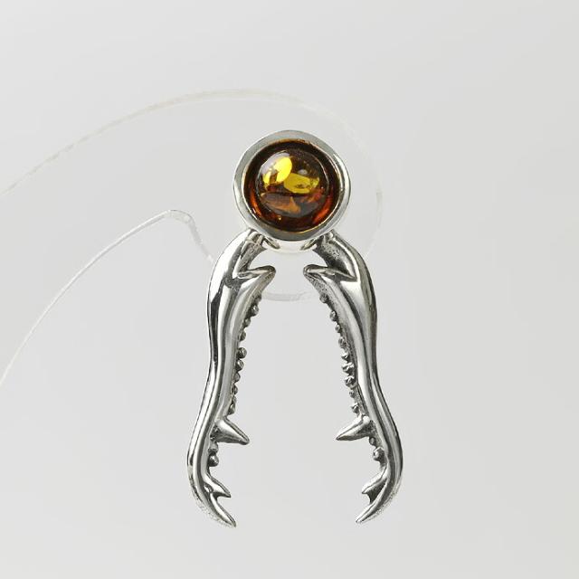 | 素材・サイズ | 【素材】 シルバー925、アンバー(琥珀) 【サイズ】 縦:約7mm、横:約7mm 大あご部分:縦:約17mm、横:約13mm ポスト:20ゲージ(約0.8mm) |