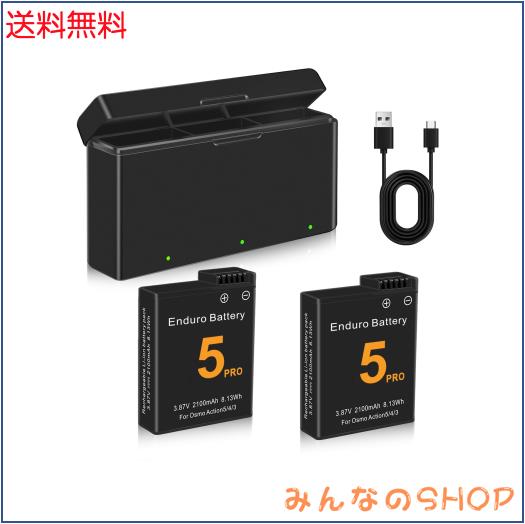 PoweLyt DJI Osmo Action 5 Pro/4/3 互換バッテリー充電器キット 2個2100mAh Osmo Action 5 Pro バッテリーと3チャンネル急速充電器ハブ