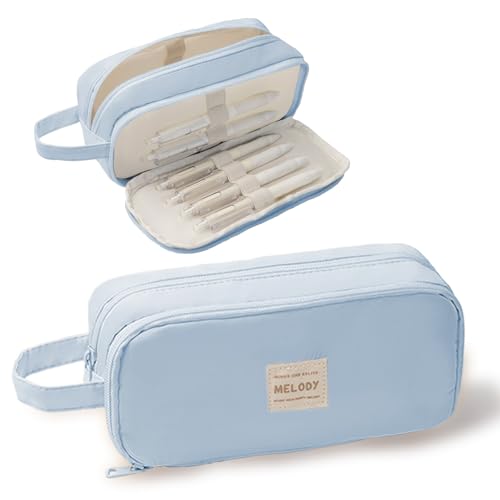 ペンケース 大容量 おしゃれ シンプル 筆箱 文具ポーチ 便利 ペン入れ 小物入れ 高校生 中学生 男の子 女の子 ブルー