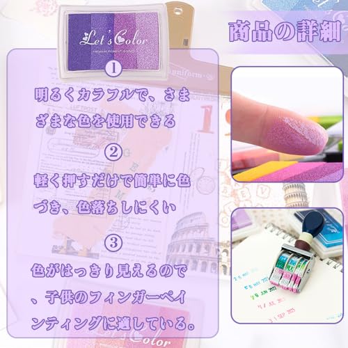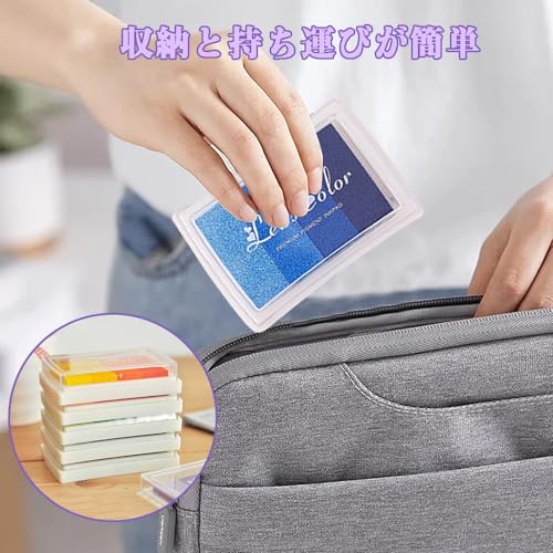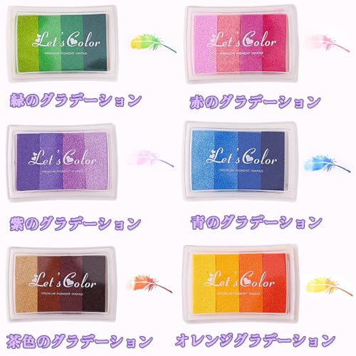 1.セット内容:水性インクパッド6個入り、サイズ:7.3 cm*5.3 cm*1.8 cm、全24色。