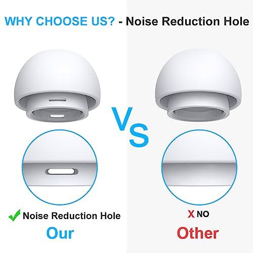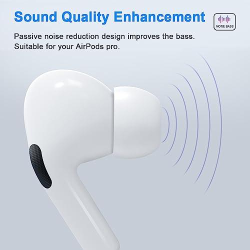 【高品質のシリコン素材採用&ノイズリダクションホール】AirPodsProイヤーチップは高品質シリコン素材を採用、2023年から2つのノイズリダクションホールが側面に追加しなした。AirPodsProのノイズキャンセリング効果を最大限に発揮でき、高音域の減衰を抑え、こもり感のない自然でクリアな音質を実現します。通勤時の電車の走行音や、オフィスの空調音などのノイズをかき消し、静かな環境で高音質音楽に集中できます。