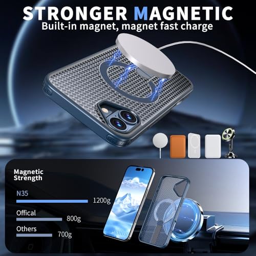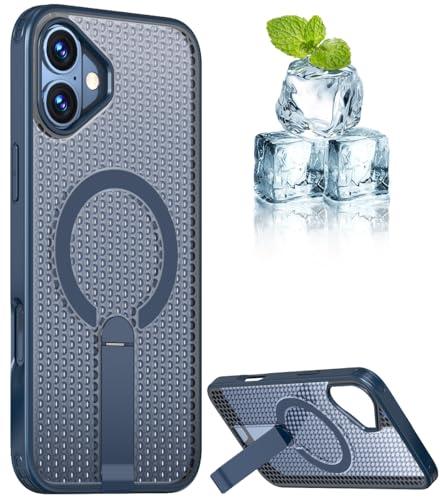 iPhone 16 Plus ケース 冷却 放熱 メッシュ スマホケース MagSafe対応 スタンド付き アイフォン16 Plus カバー 滑り止め 指紋防止 耐衝撃 ストラップホール付き 6.7インチ (iPhone16plus 紺色) 送料無料