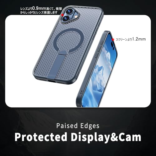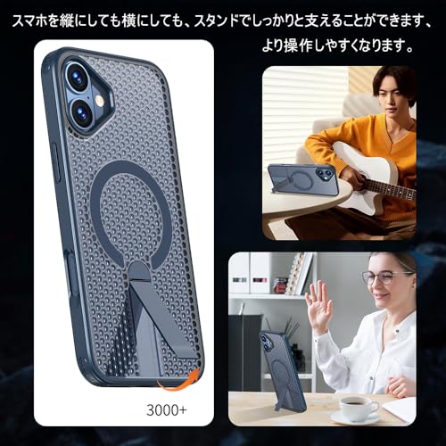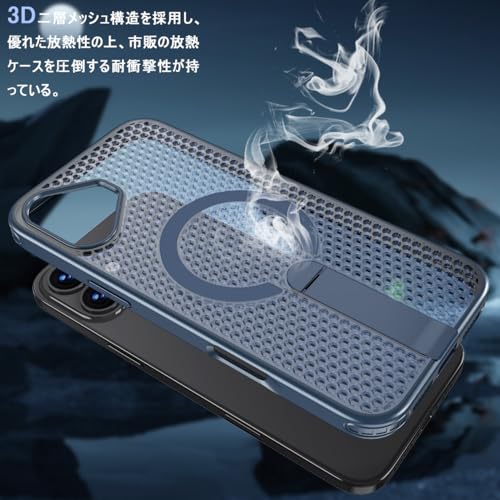 iPhone 16 Plus ケース 冷却 放熱 メッシュ スマホケース MagSafe対応 スタンド付き アイフォン16 Plus カバー 滑り止め 指紋防止 耐衝撃 ストラップホール付き 6.7インチ (iPhone16plus 紺色)