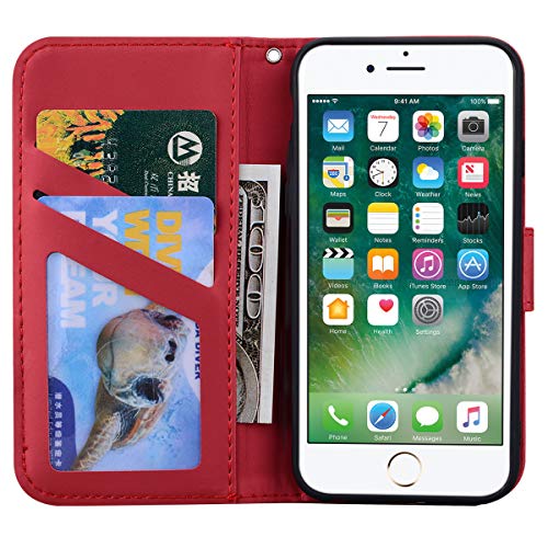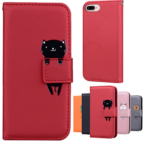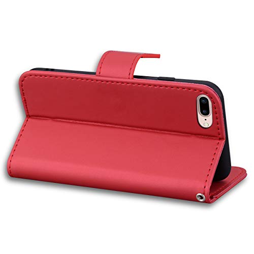 iPhone7plus ケース 手帳型 iPhone8plus 手帳ケース スマホケース スムーズなPU レザー 財布型 360度保護 耐衝撃 内蔵マグネット 携帯カバー スタンド 漫画の人形 (iPhone 7Plus / 8Plus 5.5インチ 対応) (赤) 送料無料