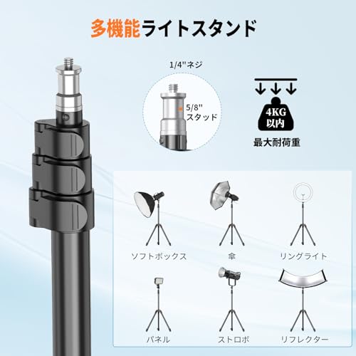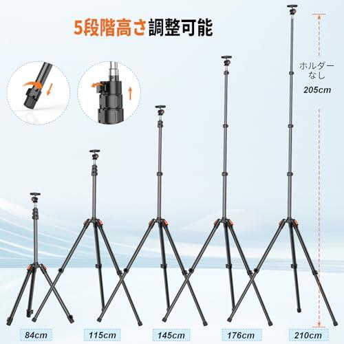 カメラ 三脚 ライトスタンド 撮影用ライト スタンド ストロボ 210cm 照明 スマホ 三脚 3段階開脚 ボール雲台 5段階伸縮 収納袋付き カメラ / 一眼レス / ソフトボックス / 傘 / ストロボ / リフレクター / iPhone / Androidに対応