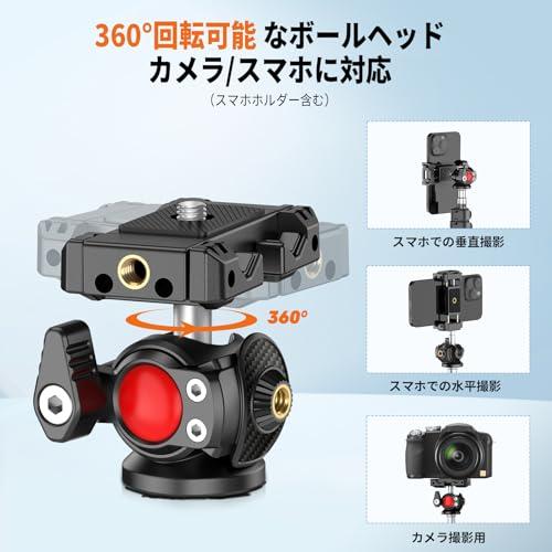 360°回転調整&縦向き撮影可能:カメラ 三脚には、360°回転可能なボール雲台を搭載しており、水平・垂直両方向での360°回転するだけでなく、前後90°の角度調整機能も装備されております。両用クリップが付属しており、正面で使用するとスマホクリップとして、裏側で小型カメラを取り付けるカメラ台として使用でき、旅行に欠かせないスマホ 三脚になります。(注:雲台最大荷重2KG)